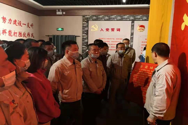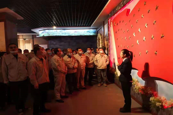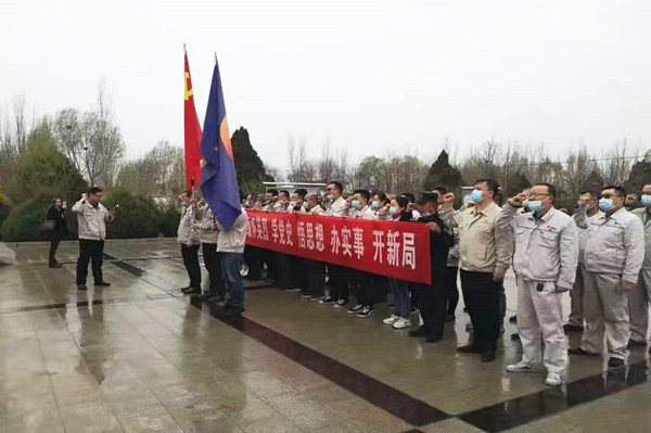 憑吊先輩英魂,傳承紅色基因;顒(dòng)中,金昱元集團(tuán)公司黨員、發(fā)展對象、積極分子舉起右手,莊嚴(yán)重溫入黨誓詞。