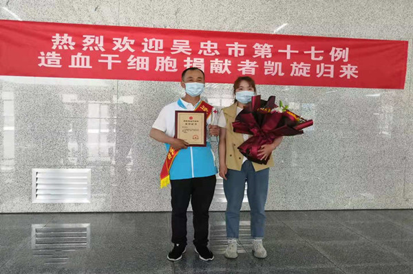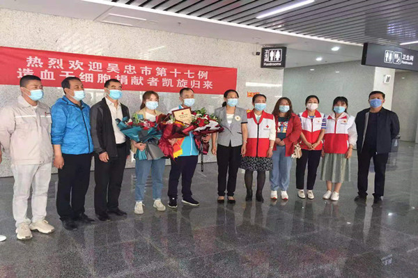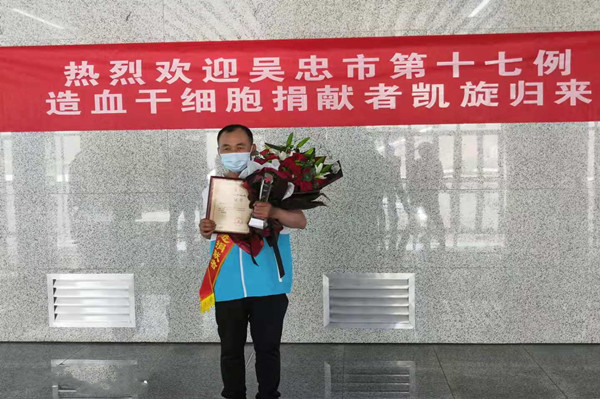 5月12日,劉治成返回吳忠,集團公司黨委副書記王立軍、支部書記唐亮等領(lǐng)導(dǎo),熱烈迎接這位造血干細胞捐獻者獻凱旋歸來。