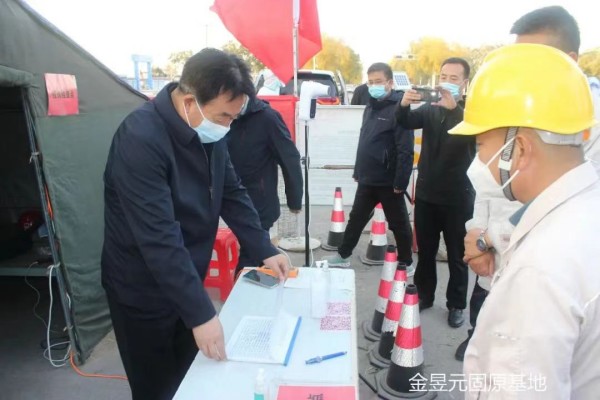 2022年10月18日下午,固原市常務(wù)副市長任立新一行蒞臨金昱元化工集團固原片區(qū)調(diào)研疫情防控工作,集團公司副總裁、片區(qū)總經(jīng)理王立軍,副總經(jīng)理馬建東、湯洪冰,綜合管理部部長劉志江陪同。