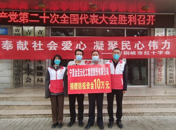 2022年10月19日金昱元化工集團向青銅峽市紅十字會捐贈10萬元防疫資金