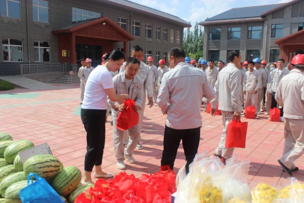 青銅峽市總工會(huì)和固原經(jīng)濟(jì)開發(fā)區(qū)總工會(huì)為集團(tuán)公司送來西瓜、礦泉水、金絲菊、冰糖等防暑物品,表達(dá)對(duì)企業(yè)一線員工關(guān)心和厚愛。
