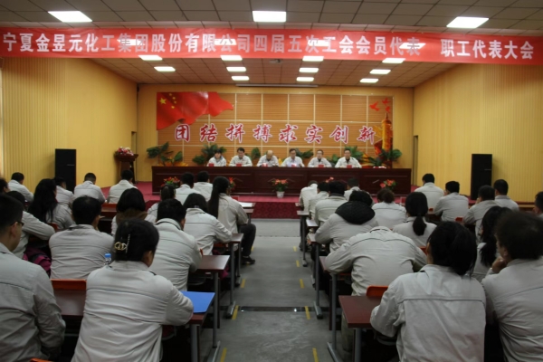 瑞雪迎春好時(shí)節(jié),奮楫揚(yáng)帆新征程。1月19日下午,寧夏金昱元化工集團(tuán)股份有限公司召開第四屆五次職工代表大會(huì)。集團(tuán)公司工會(huì)主席尚興,副主席李新,集團(tuán)公司副總裁、青銅峽片區(qū)總經(jīng)理張立軍等領(lǐng)導(dǎo)及各單位100余名職工代表參加了會(huì)議。會(huì)議由集團(tuán)公司工會(huì)副主席李新主持。