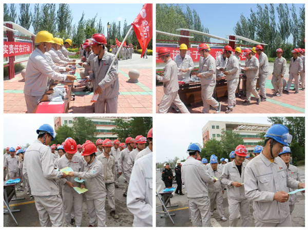 參加啟動儀式的員工莊嚴(yán)宣誓:為了公司穩(wěn)步發(fā)展,為了個人安全健康,為了家庭幸福美滿,忠誠企業(yè),恪盡職守,堅守紅線,珍愛生命,創(chuàng)建平安企業(yè);堅決做到:牢記安全,遵守紀(jì)律,履行安全職責(zé),不違章、不冒險、不留隱患、不出事故,以實際行動爭做安全合格員工,確保安全,讓企業(yè)放心,讓家人放心。