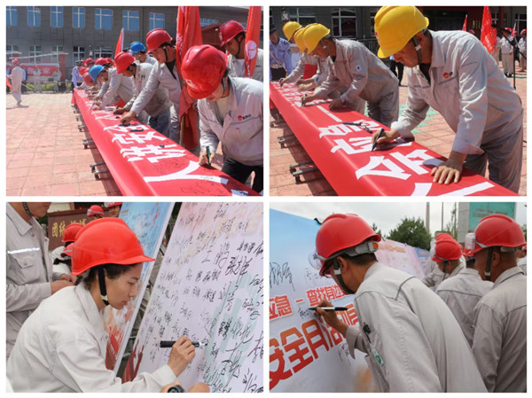 大家在簽字版上簽下自己的姓名,鄭重承諾,將牢固樹立安全意識,以身作則、嚴(yán)以律己,嚴(yán)格規(guī)范安全行為,防止各類事故發(fā)生,共同維護公司安全穩(wěn)定局面。