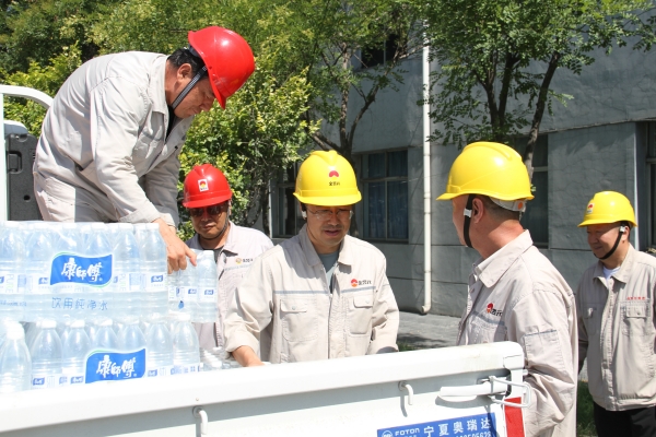 為嚴(yán)格做好高溫季節(jié)安全生產(chǎn)保障措施,持續(xù)做好防暑降溫工作,有力保障生產(chǎn)系統(tǒng)安全穩(wěn)定運行,7月29日,寧夏金昱元化工集團股份有限公司黨委副書記尚興、監(jiān)事會主席郭復(fù)生、副總裁周光平等領(lǐng)導(dǎo)深入青銅峽片區(qū),開展“夏日送清涼”慰問活動。