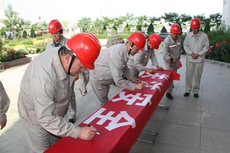 在安全宣誓儀式上,員工們著裝整齊劃一,頭戴安全帽,聲音鏗鏘有力,展現(xiàn)了公司員工“增強安全紅線意識,嚴格落實安全生產(chǎn)責任,強化監(jiān)督和防范措施”的信心和決心。公司董事長代良云率先垂范,帶領(lǐng)干部職工在主題旗上鄭重簽名,體現(xiàn)了干部職工對本職工作的安全承諾,安全有我,有我安全,做“安全合格員工”。